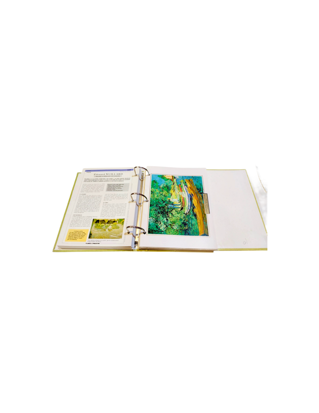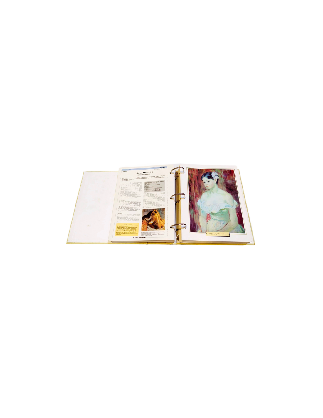 *Seis carpetas con anillas. Las carpetas contienen 1.161 fichas con cuadros de los mejores pintores impresionistas, con un cuadro en el anverso y un detallada explicación en el reverso.